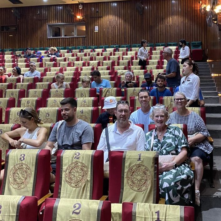 Watching water puppet show at the end.